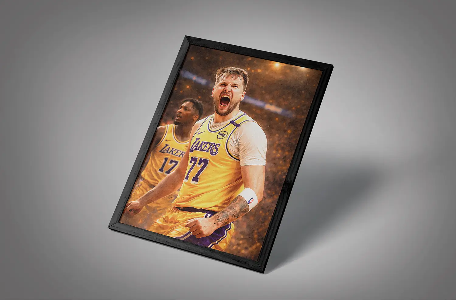 The luka doncic iconic moment wall art instantly becomes the focal point.