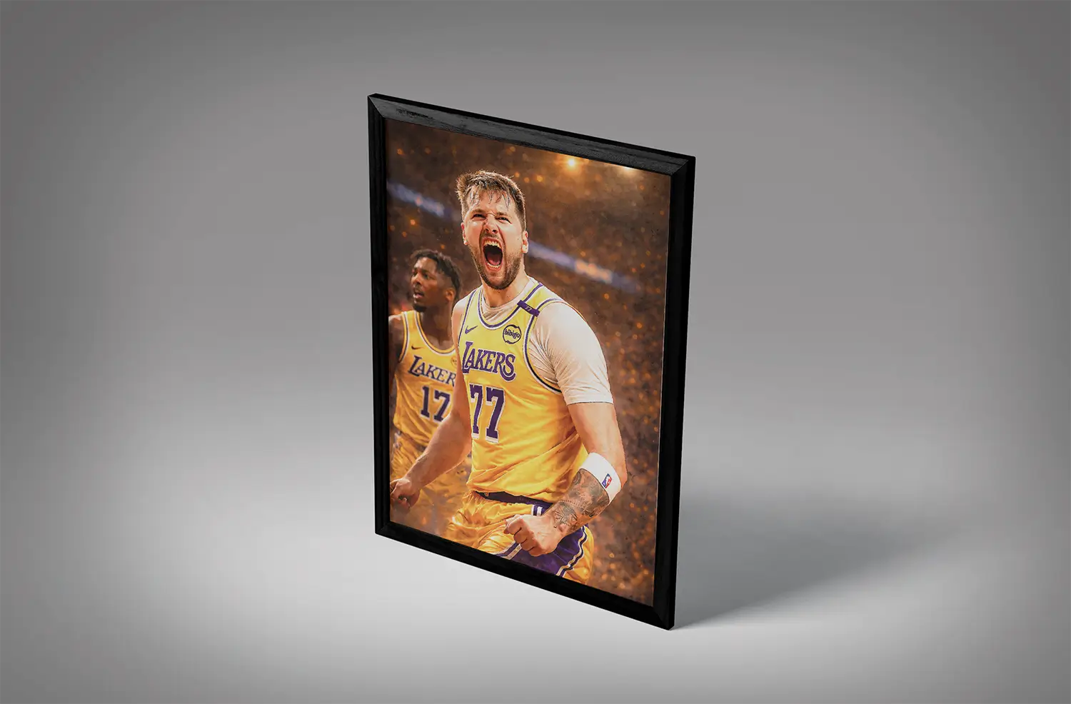 The luka doncic celebration canvas art focuses on emotion—whether it’s Luka’s stare, roar, or post-shot reaction. These moments resonate deeply with fans who appreciate the mental side of basketball.