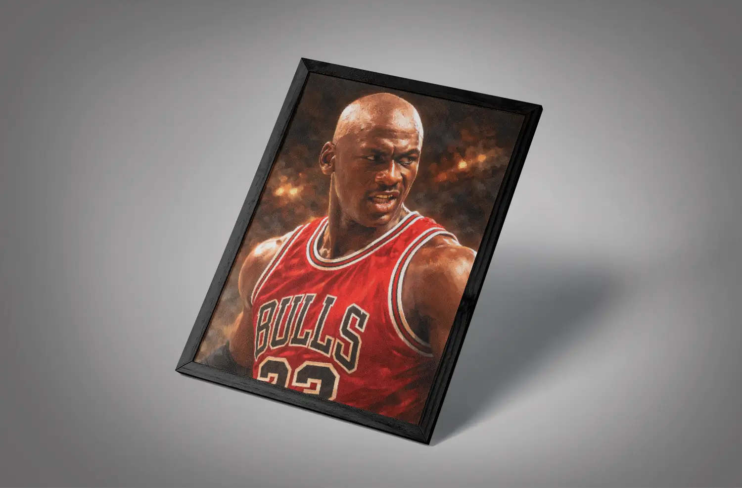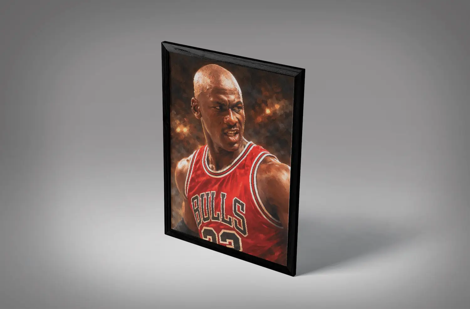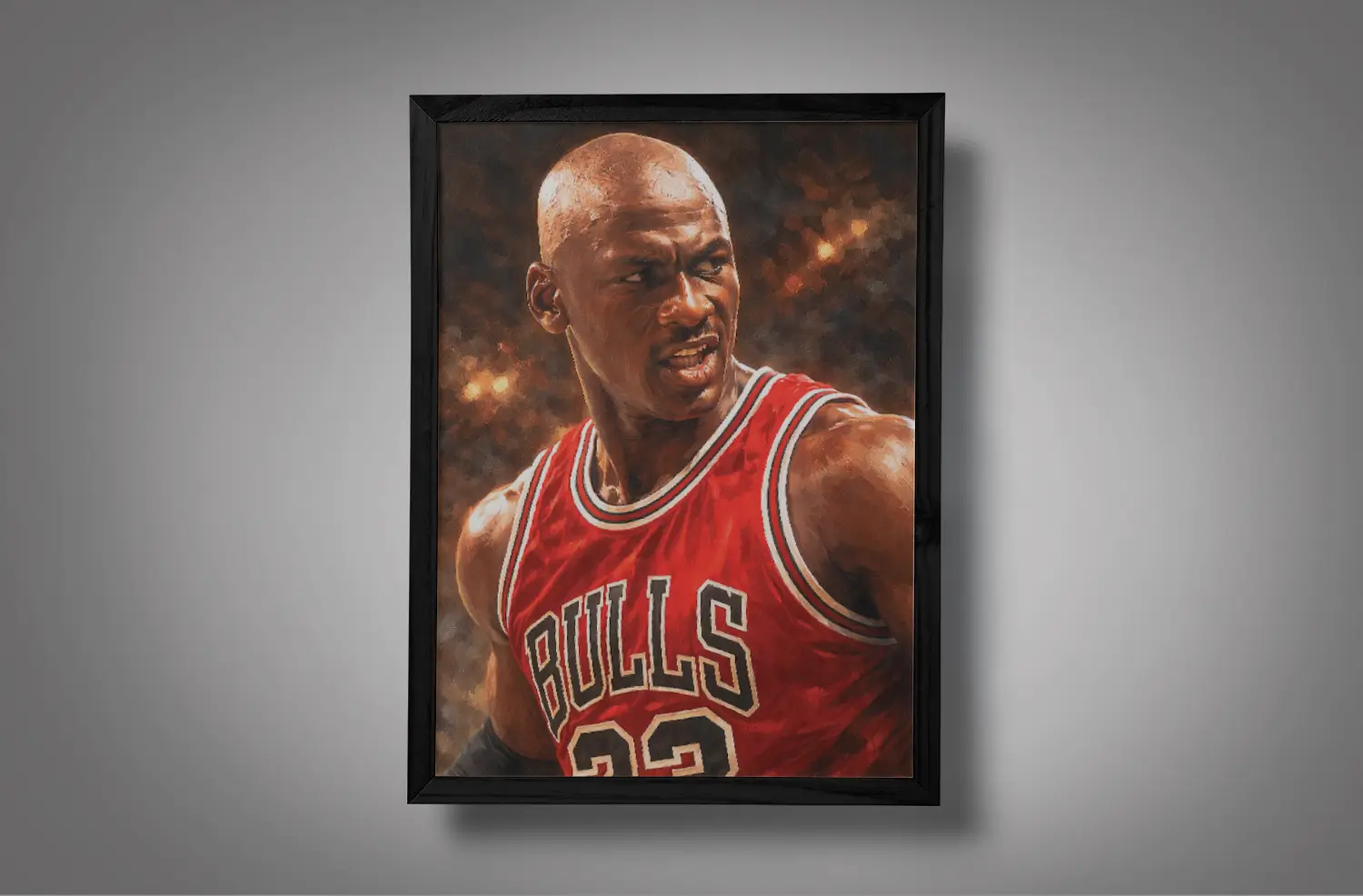 Whether you choose a fierce expression, a mean mug, or an intense face close-up, this wall art brings Jordan’s legendary presence into your space.
