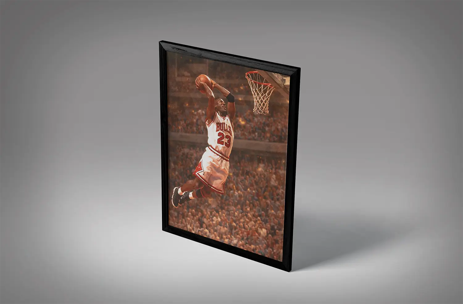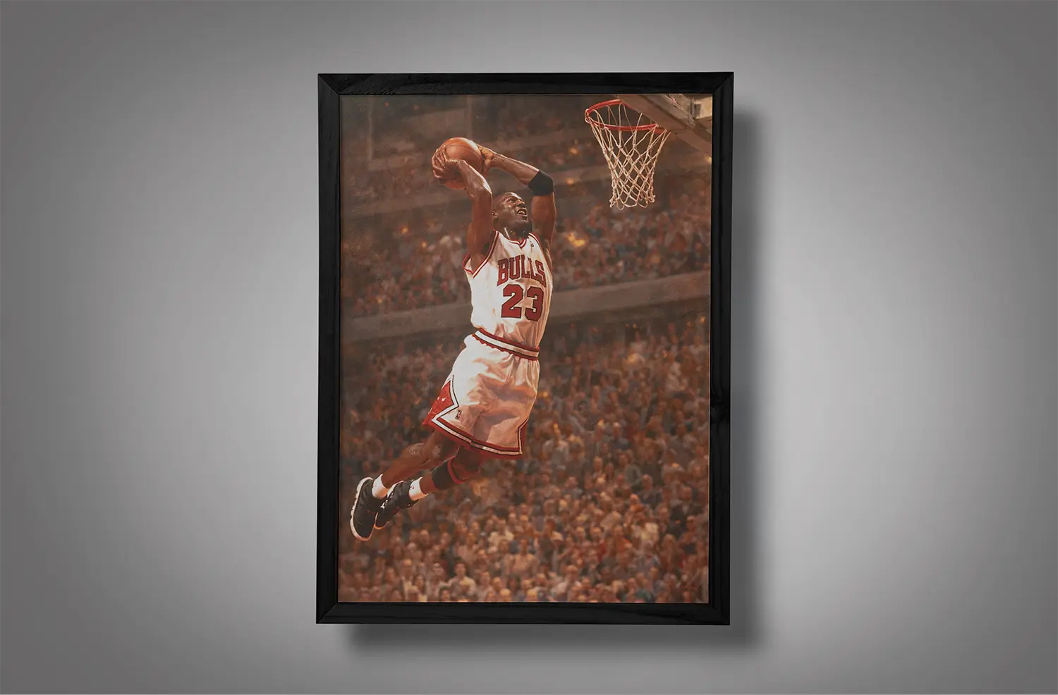 Michael Jordan two hand dunk wall art is a premium NBA-inspired wall decor that captures the raw power, elevation, and dominance of basketball’s most legendary moment—making it a perfect statement piece for fans, collectors, and modern interiors.