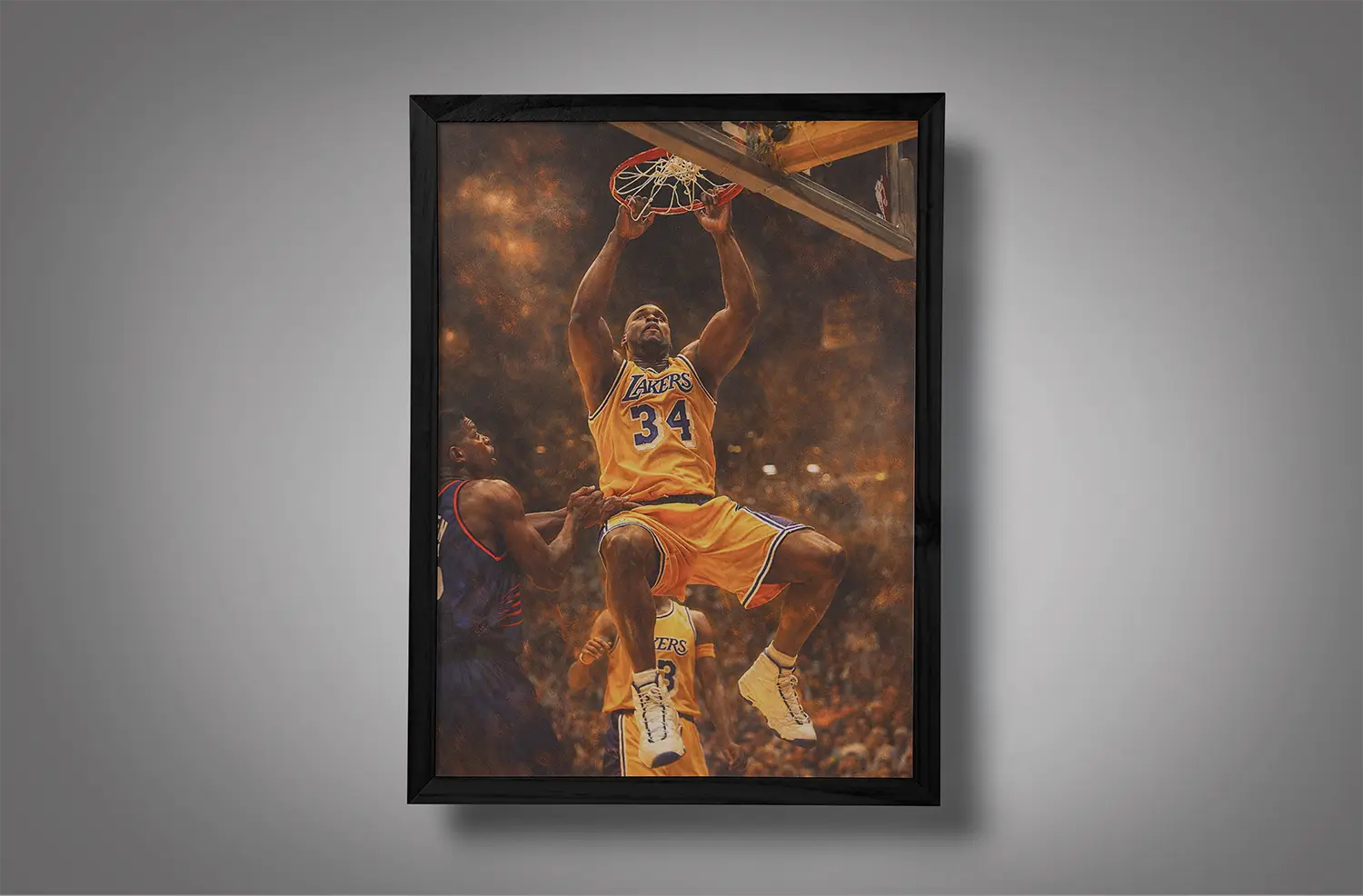 This shaq two hand dunk wall art brings the same presence Shaq brought to the hardwood—big, bold, and impossible to ignore.
